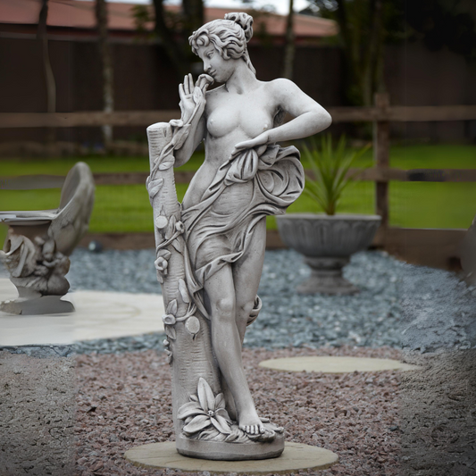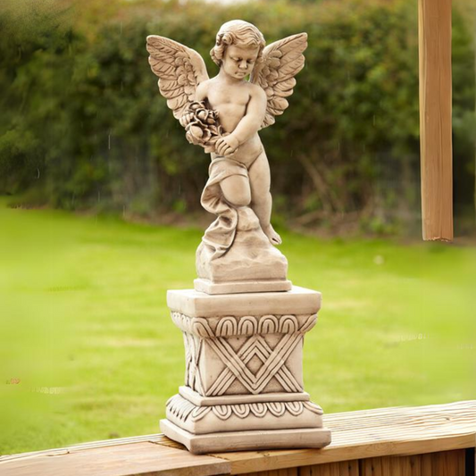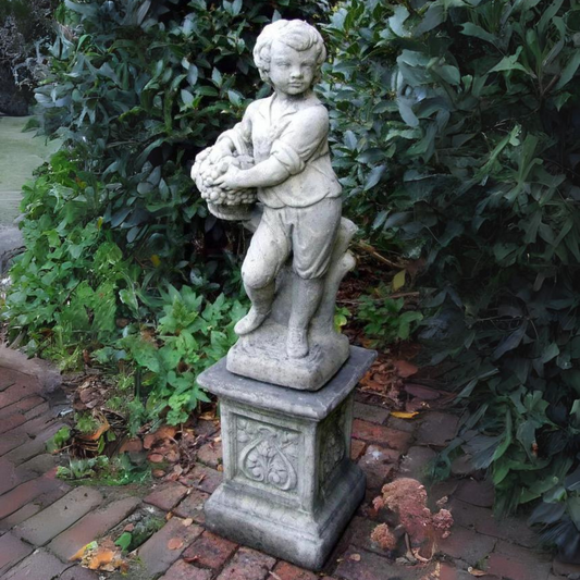 Autumn Boy on Emblem Plinth Stone Garden Statue