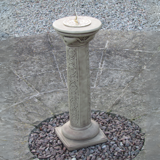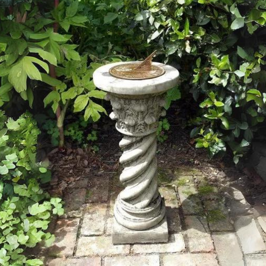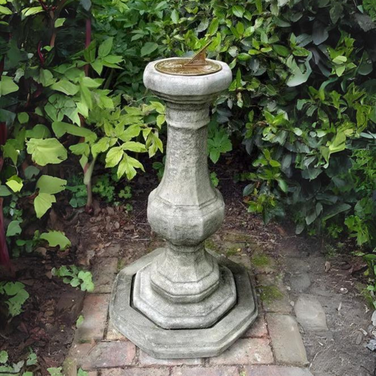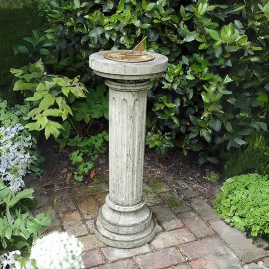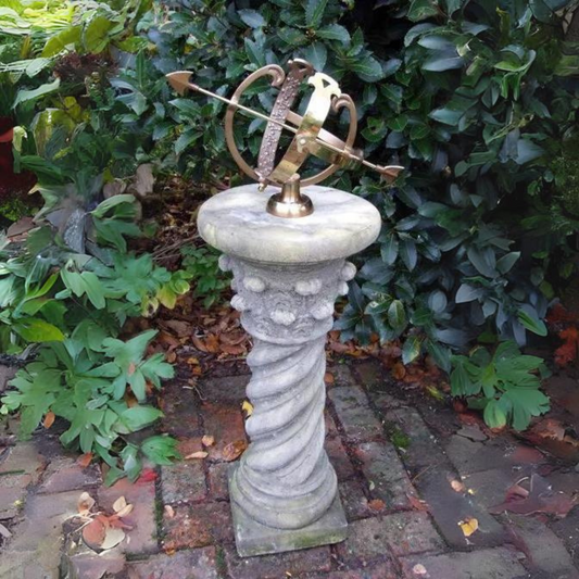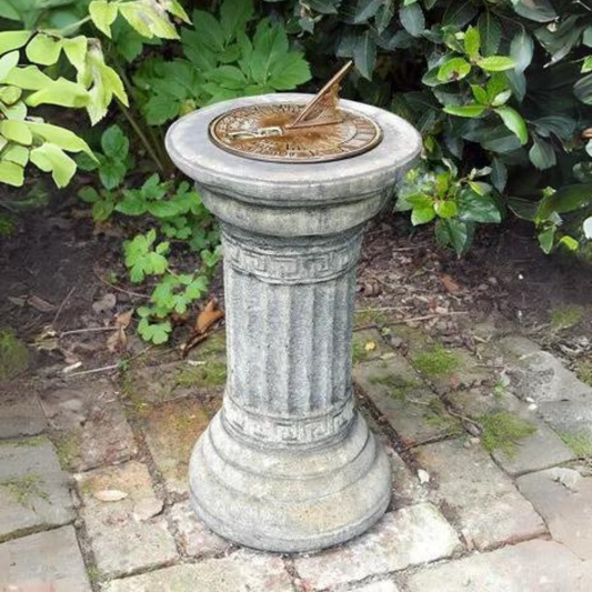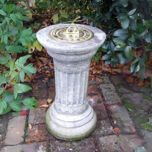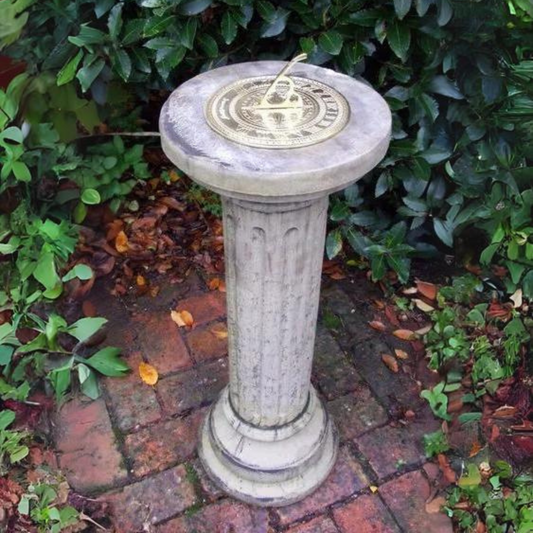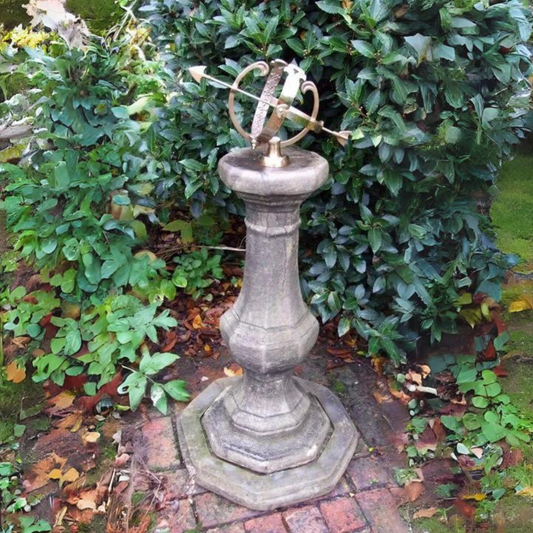 Pedestall Aged Stone & Brass Sundial Garden Ornament