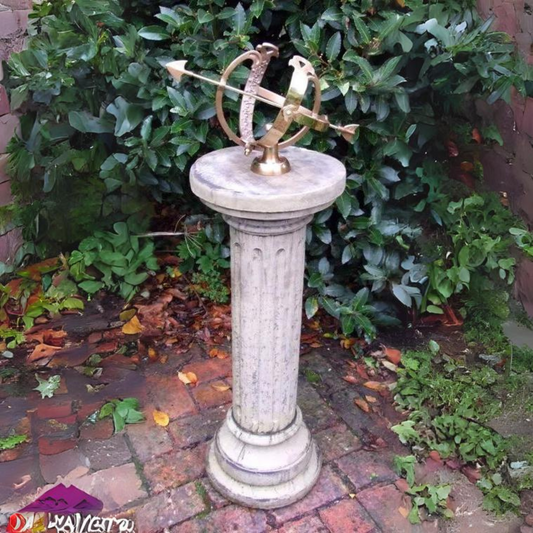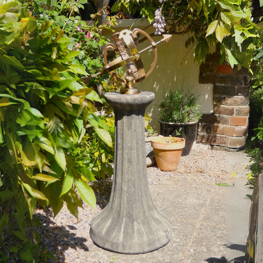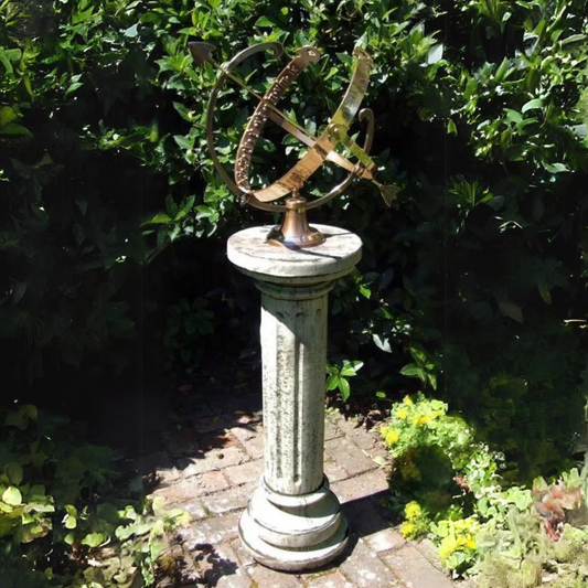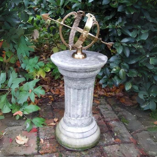 Medium Pedestall Armillary Stone & Brass Garden Ornament