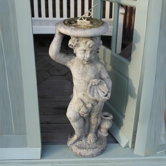 Roman Aged Stone & Brass Sundial Garden Ornament